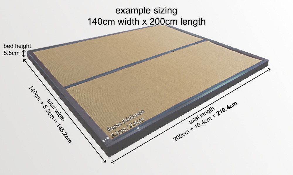 Alternatively our tatami frame can also surround 4cm thick framed slats.